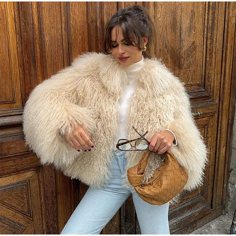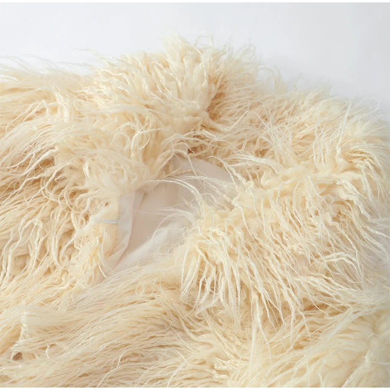 Luxuriöse warme flauschige Kunstpelzmantel 2024, Damenmode, solide, lange Ärmel, kurze Mäntel, Winter, weiblich, lässig, High Street, Obermantel